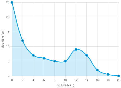 Biểu đồ bên thể hiện tốc độ phát triển chiều cao trung bình qua các độ tuổi, nhấn mạnh giai đoạn cần hành động